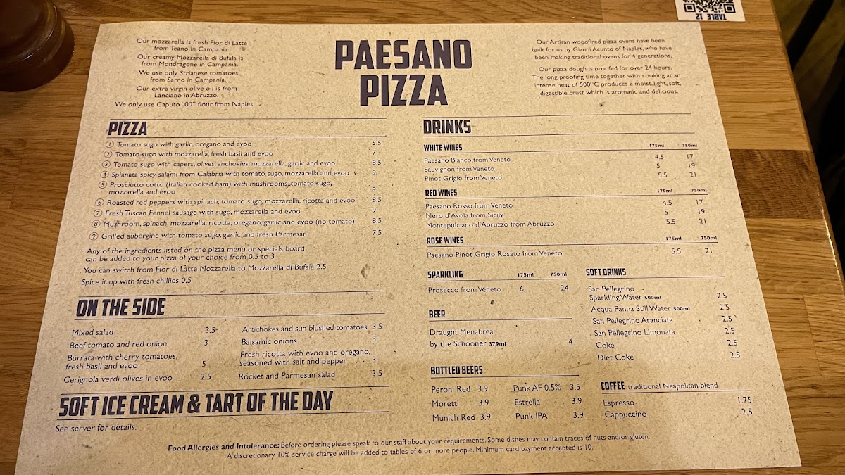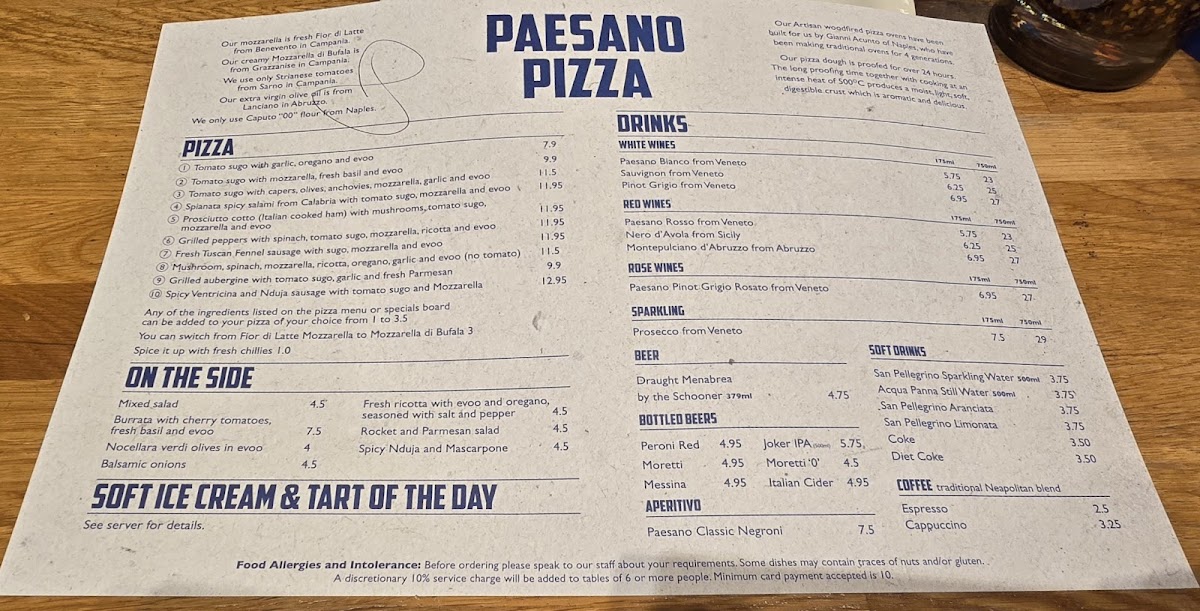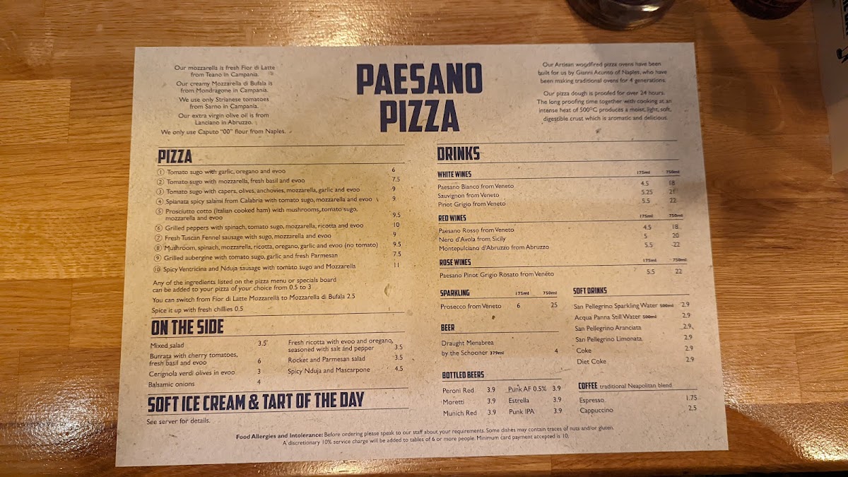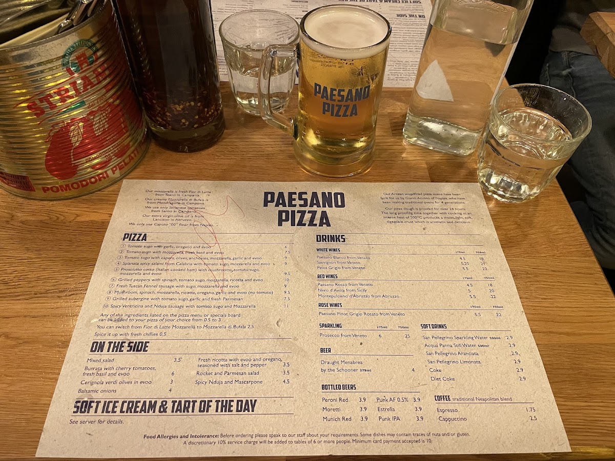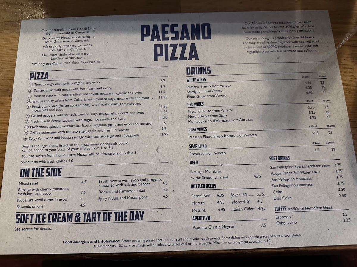 Paesano Pizza Menu